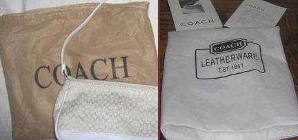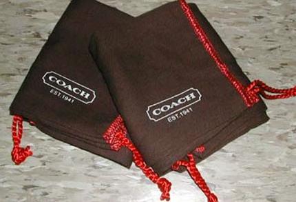 10. Dust bags: Authentic Coach dust bags should be dark chocolate brown with a red drawstring. In the bottom right the words in all caps "COACH EST.1941?" written in white. Coach does not use cheap material to make their dustbags. A flimsy, cheaply made dustbag is a good indicator the bag is fake. Image of authentic Coach dustbags: