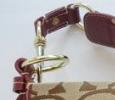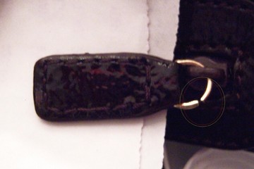 O-rings: If the bag or accessory has any O-Rings they will be continuous circles and high quality. There will be no break in the circle and should not spin. If the strap has a key hook on it it will be the same color and the same size as the O-Ring. Fake Coach O-Rings may spin and the gap is visible, where the metal had been pinched together. Also, the metal may be plated to look like brass. Real Coach hardware is made of actual brass or heavy duty metal (more on gold metal hardware later). Below is an image of an authentic Coach O-Ring: [Note]: Thers is no gap in the ring and it is secured to the link. This O-Ring lost its zipper pull, which actually helps make the point due to the ability to view all 360 degrees of the ring.
