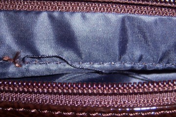 8. Seams: Authentic Coach handbag interiors and authenticity tags should never be glued but neatly stitched on. If the stitching is of poor quality, by being raised in some areas, or if you see the string knot then it may be a fake. Below is an image of poor seam/stitch line: